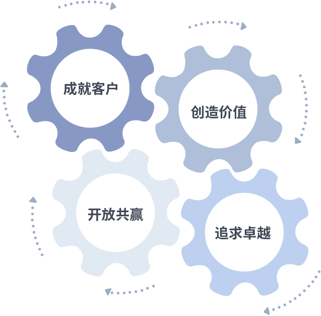 成就客户是一切决策的出发点,,,,创造价值是衡量所有工作的标准,,,追求卓越是尊龙凯时做事做人的态度,,,,开放共赢是尊龙凯时的格局也是最终的结果。。。。价值观的齿轮环环相扣,,推动着组织里的每个人不断向前。。